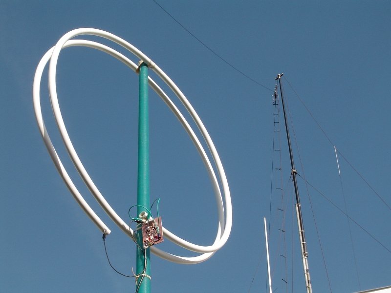Experiment met de dubbele breedbandige LG en MG ontvangst loop, de versterker die ik hier gemaakt heb is van DB1NV en kreeg ik via PA0IB Steef. Het is een goede antenne maar je kan ook volstaan met 1 winding, een rotor is gewenst!