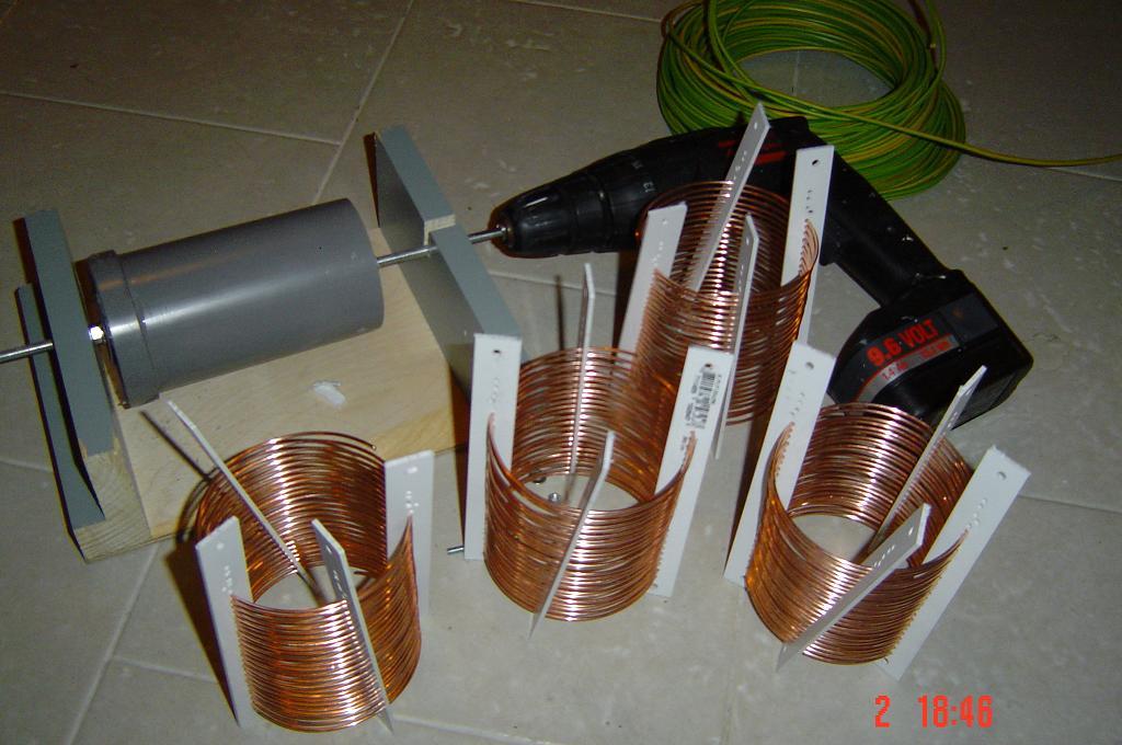 Het spoelen wikkelen is secuur werk hoor... de 16 witte geleiders stapelde ik en boorde ze in 1 keer.